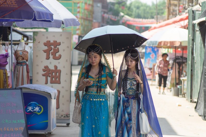 Фотография сделана в окрестностях города Лишуи. Красивые девушки в национальных одеждах ждут парней.