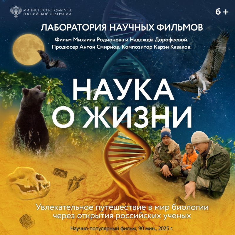 «Наука о жизни», созданного «Лабораторией Научных Фильмов» и творческим коллективом Monticola Films при поддержке Министерства культуры Российской Федерации. В захватывающем путешествии сквозь время и пространство зритель узнает, как отдельные эксперименты становятся частью единой научной картины. Это история о людях, чья страсть к знанию меняет будущее — шаг за шагом, открытие за открытием. Они заглядывают в прошлое, чтобы понять, как всё началось, и смотрят в будущее, чтобы сберечь наш удивительный мир.
