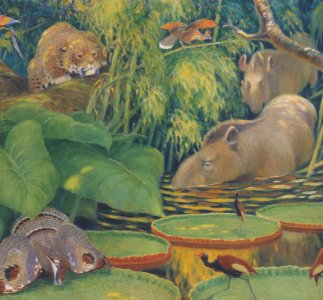 Хранитель А.Б. Нефедова.Насчитывает 1975 работ, выполненных на холсте, картоне и фанере (в основном маслом, реже темперой). С начала XX века в разное время в стенах музея работали лучшие российские художники-анималисты В.А. Ватагин, АЛ. Комаров, Н.Н. Кондаков, В.В. Трофимов, К.К. Флеров, А.Н. Формозов, В.А. Белышев. Их замечательные полотна, значительную часть которых можно увидеть в экспозиции музея, составляют ядро коллекции. В частности, в музее экспонируется известная серия картин (холст, масло) по зоогеографии В.А. Ватагина, выполненных с авторских акварелей, специально написанных для издания «Зоогеографический атлас» профессора М.А. Мензбира (издательство М. и С. Сабашниковых, Москва, 1911 г.). Очень интересны полотна В.А. Ватагина и К.К. Флерова, на которых с большой научной достоверностью изображены вымершие животные. Большая часть их также экспонируется в залах музея. Значительное количество живописных произведений В.А. Ватагина, К.К. Флерова, М.Д. Езучевского объединены темой «Животные на службе у человека».В.А. Ватагин. Белохохлый какаду. Картон, масло. 1919 год.В.М. Евстафьев. Молодой Ч. Дарвин и ботаник Д. Генслоу. Картон, масло. 1960 год.В.А. Ватагин. Казуары. Холст, масло. 1938 год. В.А. Ватагин. Фауна горных районов Индокитая. Холст, масло. 1939 год.